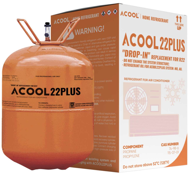 ACOOL22PLUS is high purity and environmentally friendly hydrocarbon mixture. This product is designed ass “Drop-in” alternative refrigerant (without changing the system strutre) for R22 - still used in refrigeration systems, especially civil air - conditioning systems.