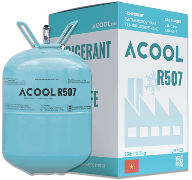 R507 is a mixed refrigerant of HFC-125 (50%) and HFC-143a (50%), used as an alternative to R502 in low and medium temperature refrigeration applications. R507 is listed as a green house gases due to high Global Warming Potential.